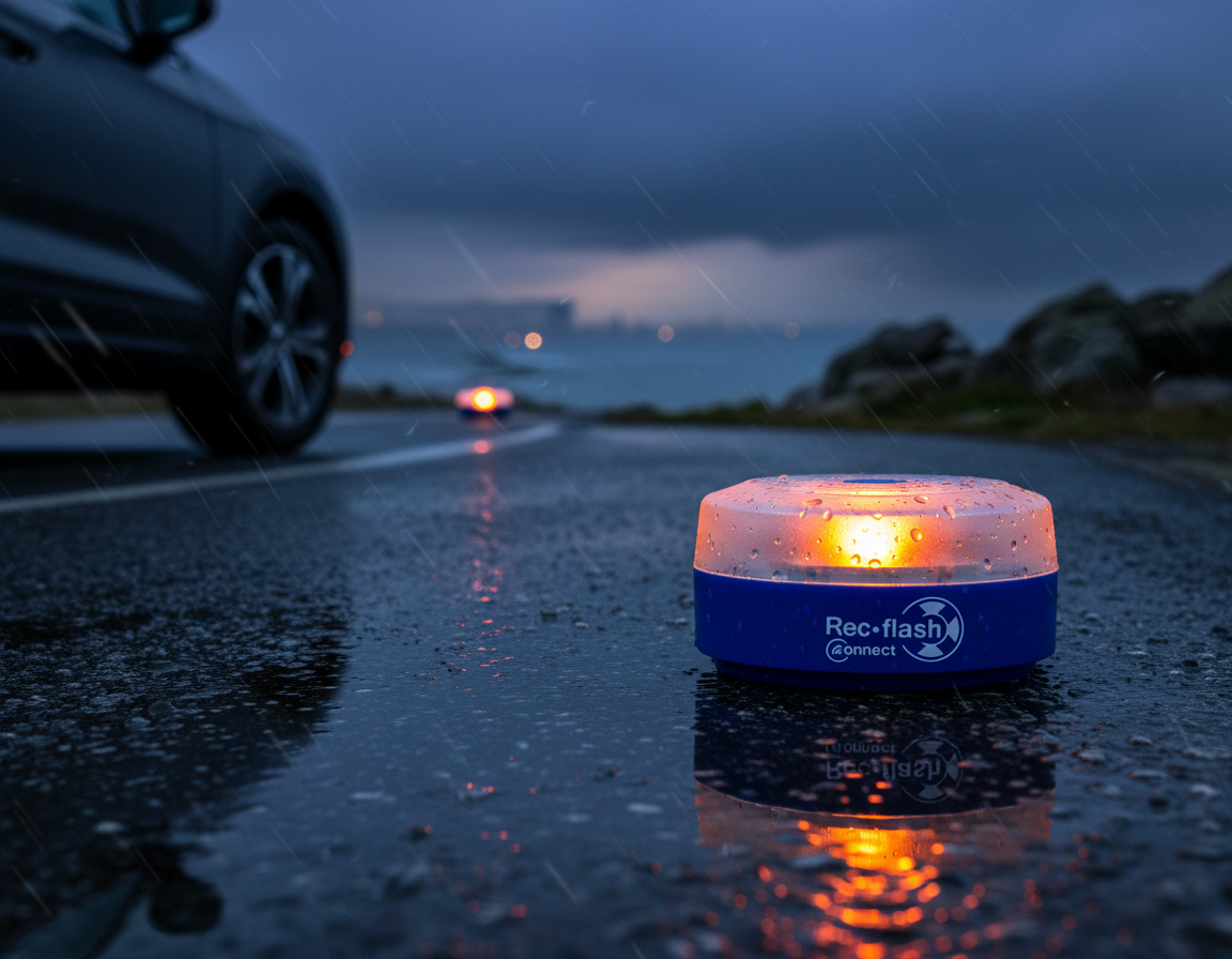 Rec Flash cuenta con una avanzada tecnología LED. Señaliza la ubicación del vehículo en cuestión de segundos gracias a sus potentes destellos color amarillo auto. Es visible en todas las direcciones y a 1 km de distancia.