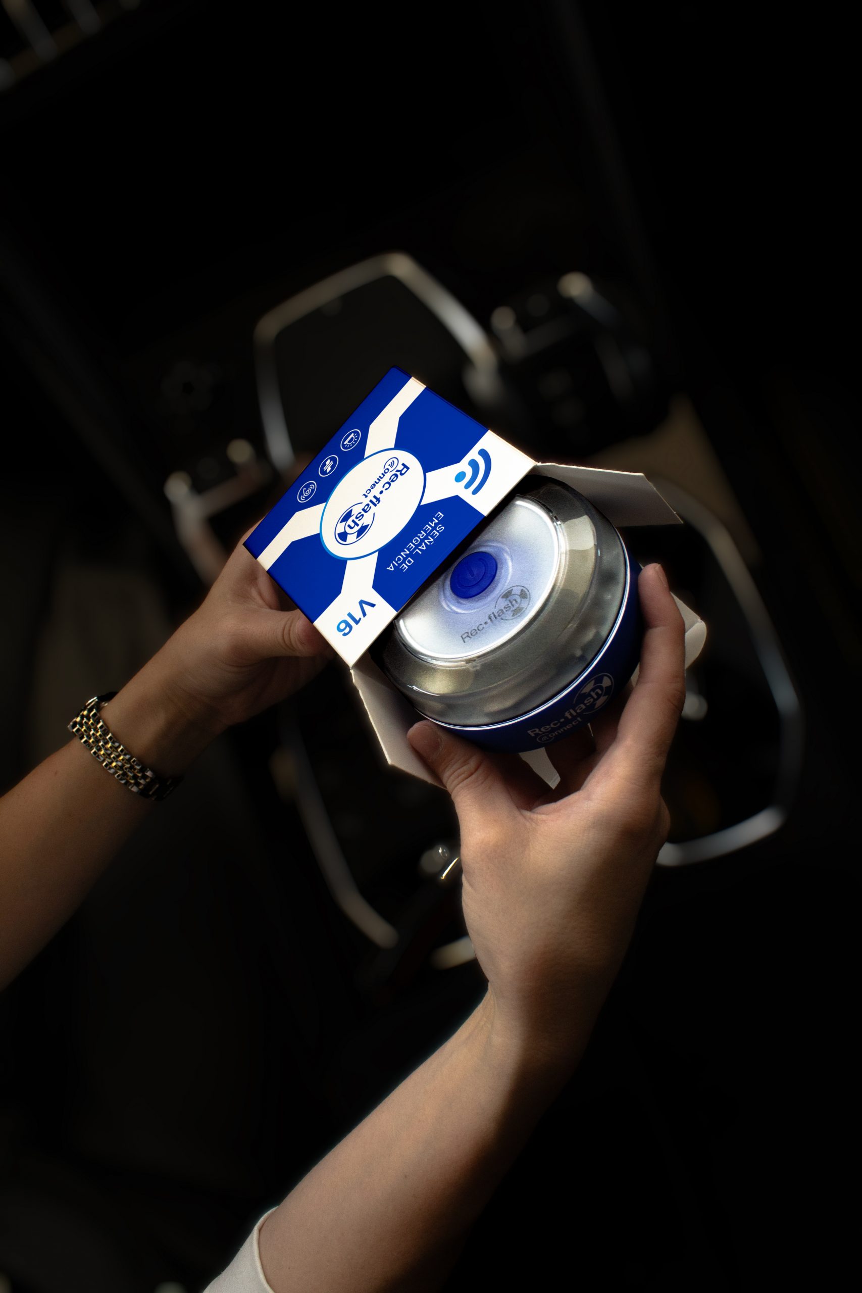 Su base magnética de alta potencia permite su colocacion de forma rápida y segura sobre cualquier vehículo. Se activa sin salir del coche y queda visible en segundos, garantizando asi, máxima seguridad y fiabilidad en carretera.